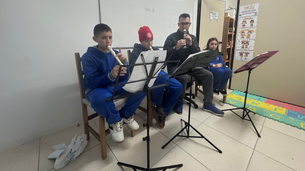 As aulas acontecem todas as quartas e quintas-feiras, nos turnos da manhã e da tarde, sob orientação do professor Eron Luiz Jantsch. Durante as atividades, os alunos têm a oportunidade de explorar a musicalidade, desenvolver a sensibilidade artística e descobrir novas formas de expressão por meio do instrumento.