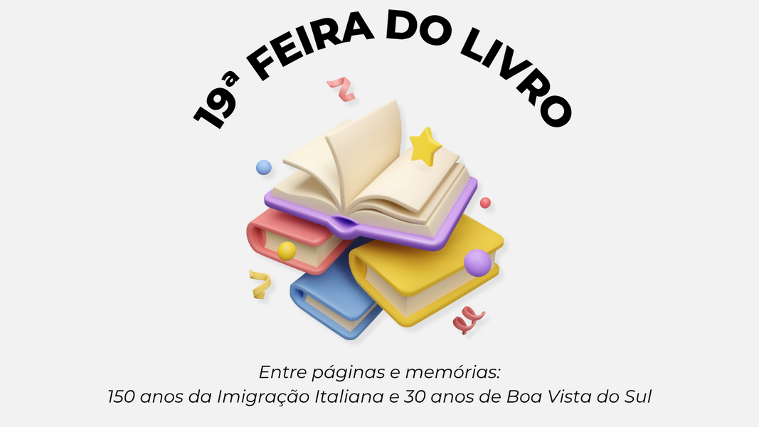 A Prefeitura Municipal de Boa Vista do Sul convida toda a comunidade para participar da 19ª Feira do Livro, um evento que celebra a literatura, a cultura e a imaginação.