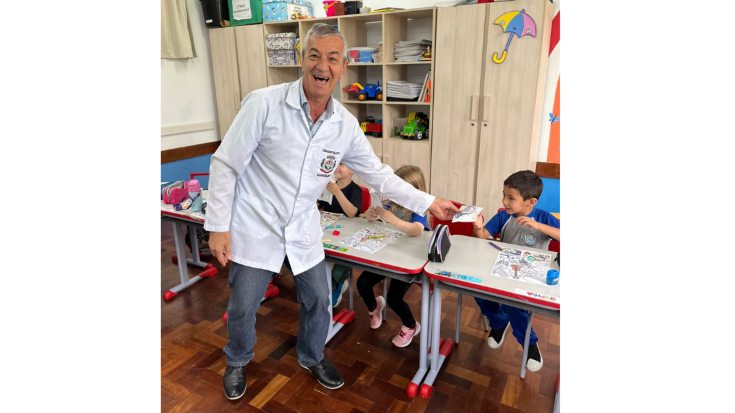 Nesta semana, o odontólogo Marcelino realizou a distribuição de 420 kits de higiene bucal — contendo escova, creme dental e fio dental — aos alunos das escolas Duque de Caxias, Sementinhas do Bem e Marcelino Champagnat.